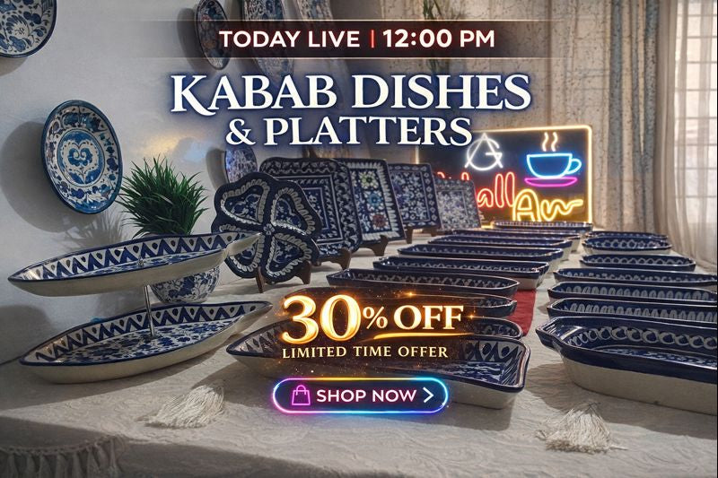 Elegant dinnerware: Adding handicrafts to your dining experience with blue pottery plates,...