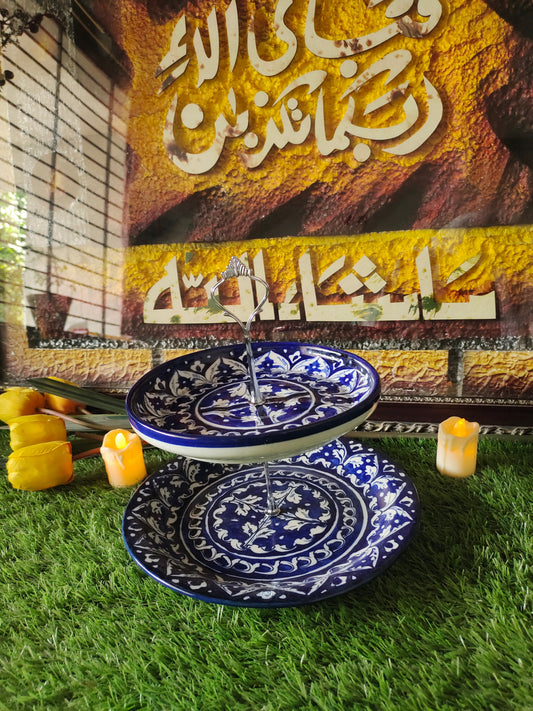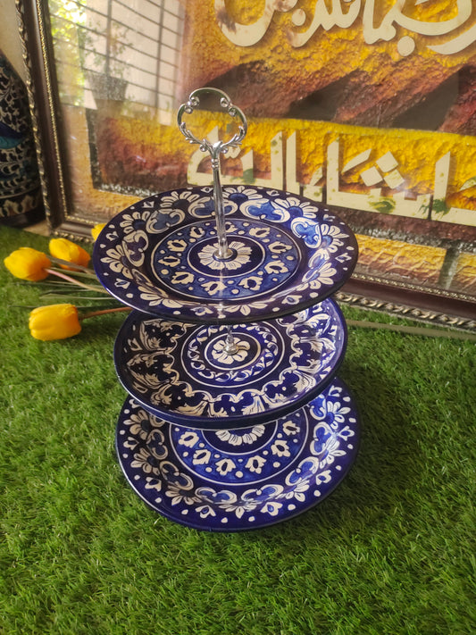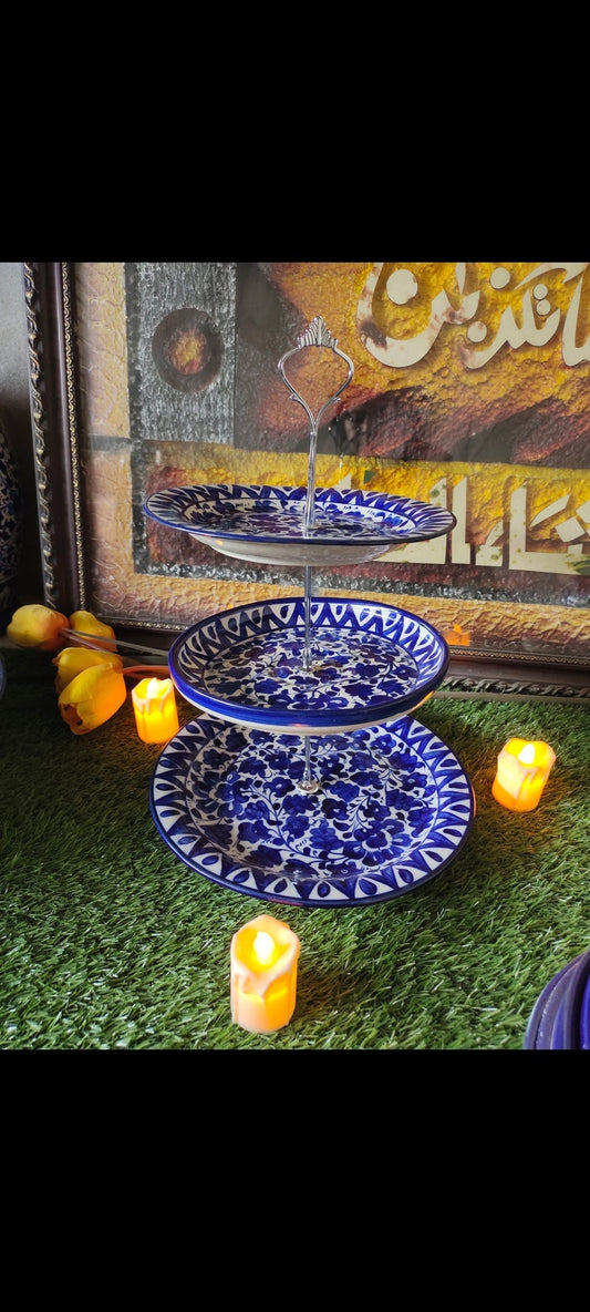 Ceramic Handmade Blue 3 Tier Cake Set | Cake Stand | Ghauri Design