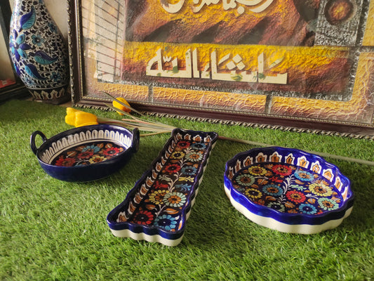 Ceramic Handmade Kabab Dish | Salad Bar | Serving Dish | Size 10 inch | Bundle Deals | 3 Pcs set