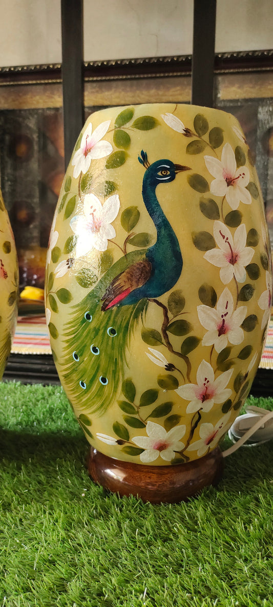 Handmade Camel Skin Lamp Peacock Pair | Size 16 inch