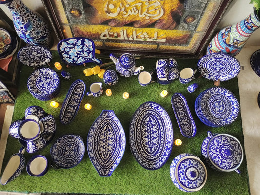 Customized Handmade Blue Ghauri Dinner Set | 8 Men Set | 55 Pcs | Tableware | Free Delivery