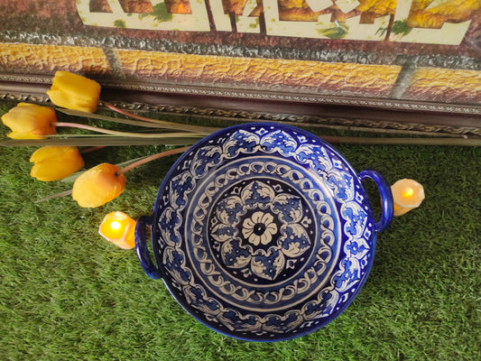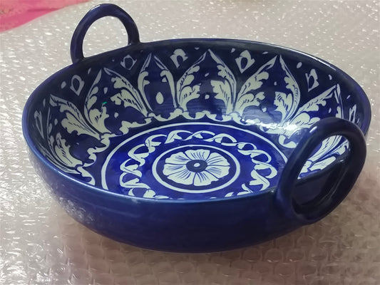 Ceramic Handmade Handle Karahi | Size 9 inch
