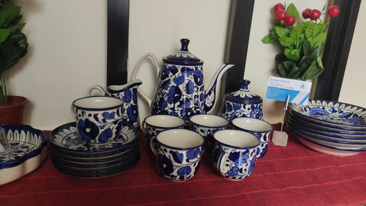 Handmade Ceramic Blue Pottery Tea Set | Quantity 15 pcs