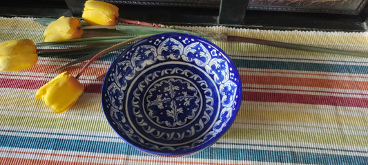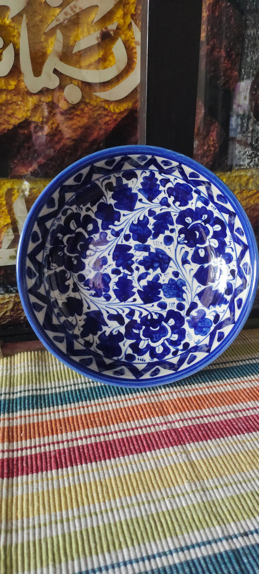 Adding handicrafts to your dining experience with blue pottery plates, bowls, and serving trays | platters can make any meal into an artistic and regal affair.