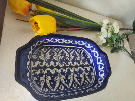 Ceramic Handmade Blue Pottery Square Dish Platter | Size 9 inch