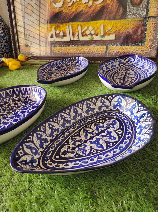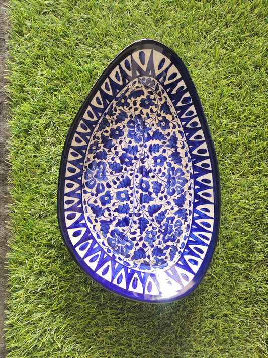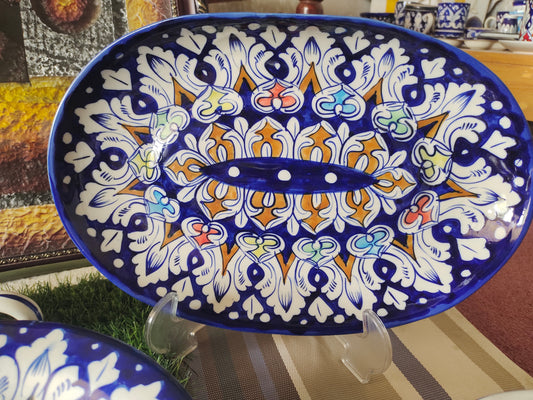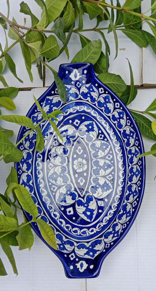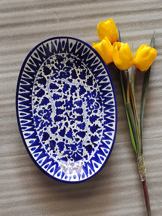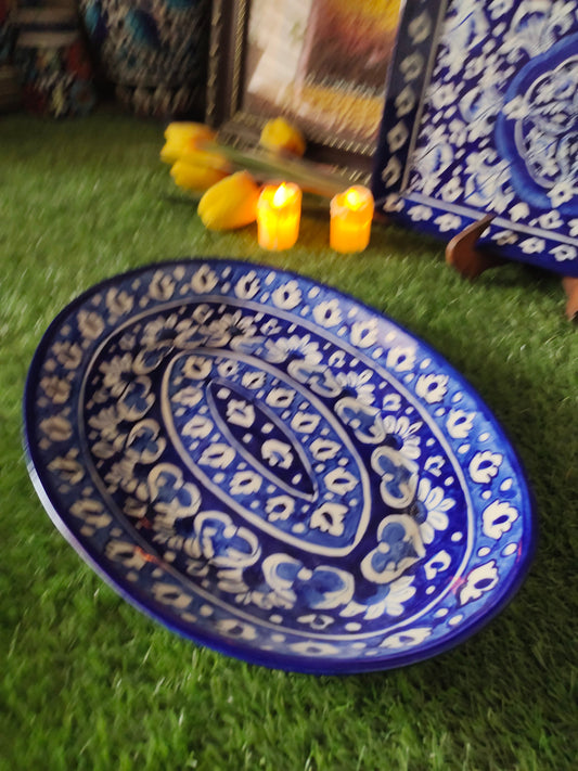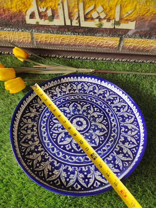 Ceramic Handmade Rice Platter Dish | Khaadi Blue Design | Size 14 inch