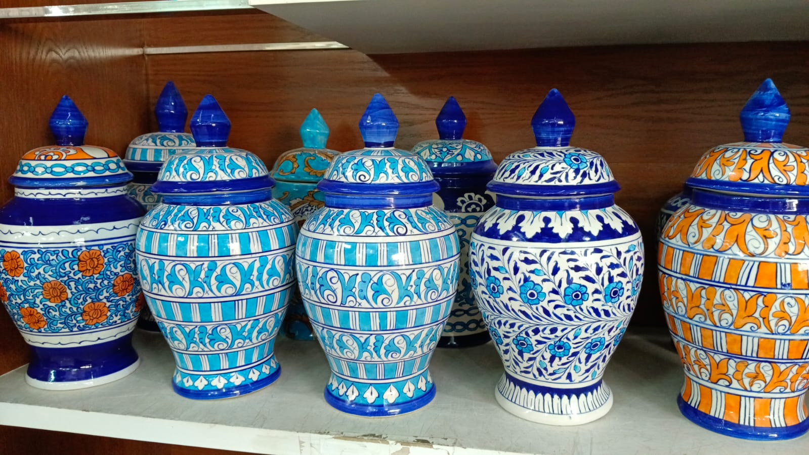 High Quality· Blue Pottery of Multan· Blue pottery Chinese Jar / Pickle Jar/ Ginger Jar· Color shine Guarantee: Lifetime· An exquisite design and art work· Usable pottery