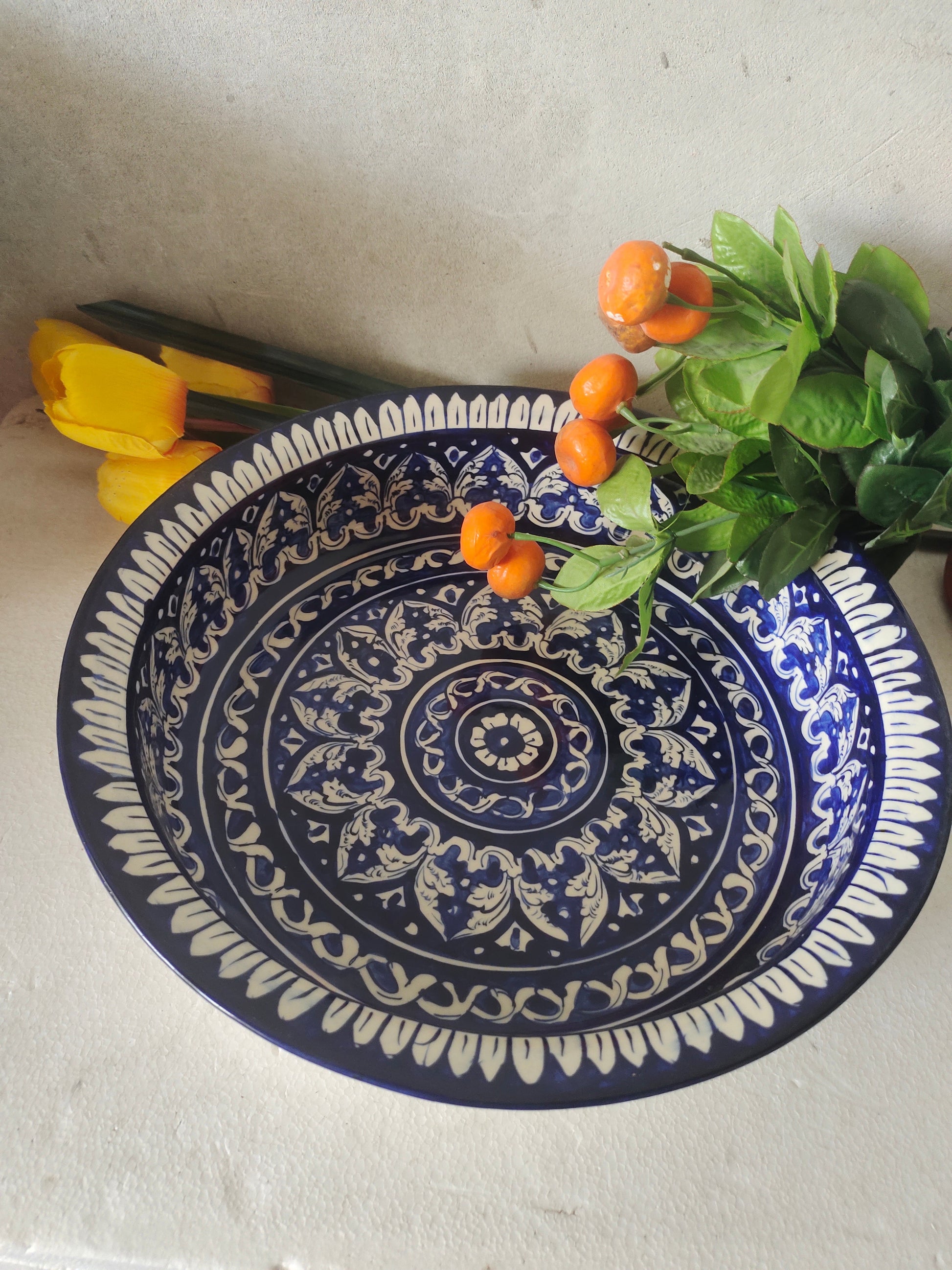 Ceramic Handmade Gauri Fruit Bowl | Large Size 15 inch | Deep 3 inch