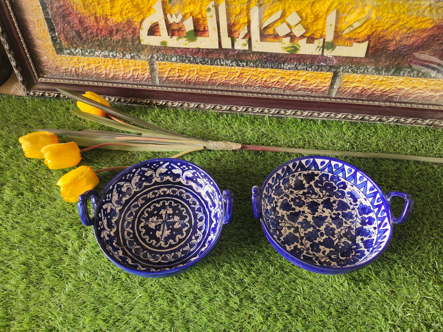 Ceramic Handmade Handle Karahi | Size 9 inch