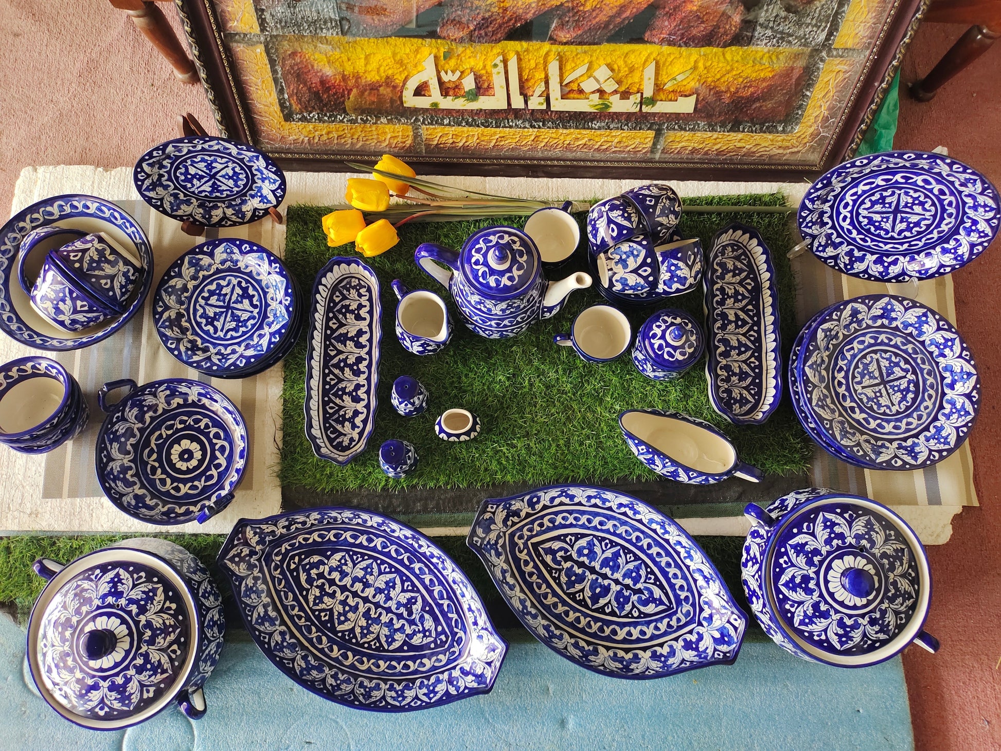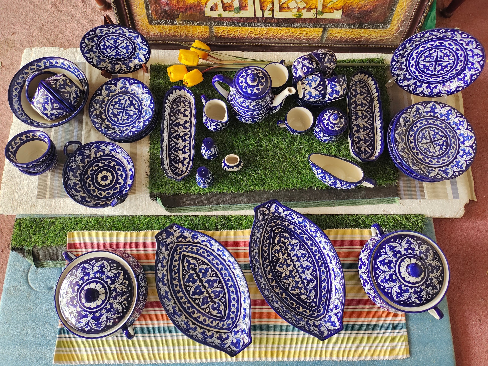 Ceramic Handmade Dinner Set | Blue Gauri Design | Quantity 52 Pcs